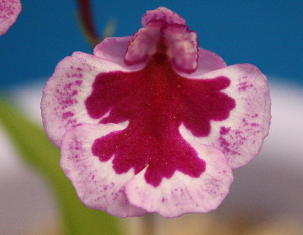 今日の花は、純白大紅点花です。純白地を大紅点が覆いつくすのが特徴の花です。